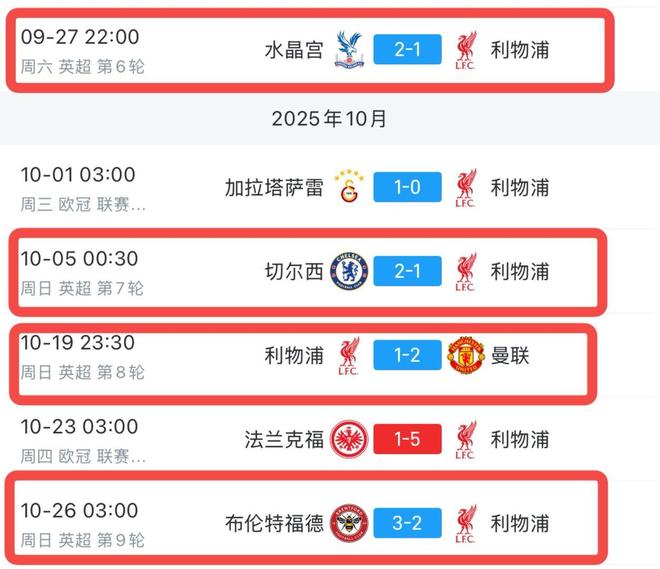 2024-25赛季英超,卫冕冠军利物浦在开局联赛5连胜后紧跟着迎来一波4连败,前后表现判若两队。